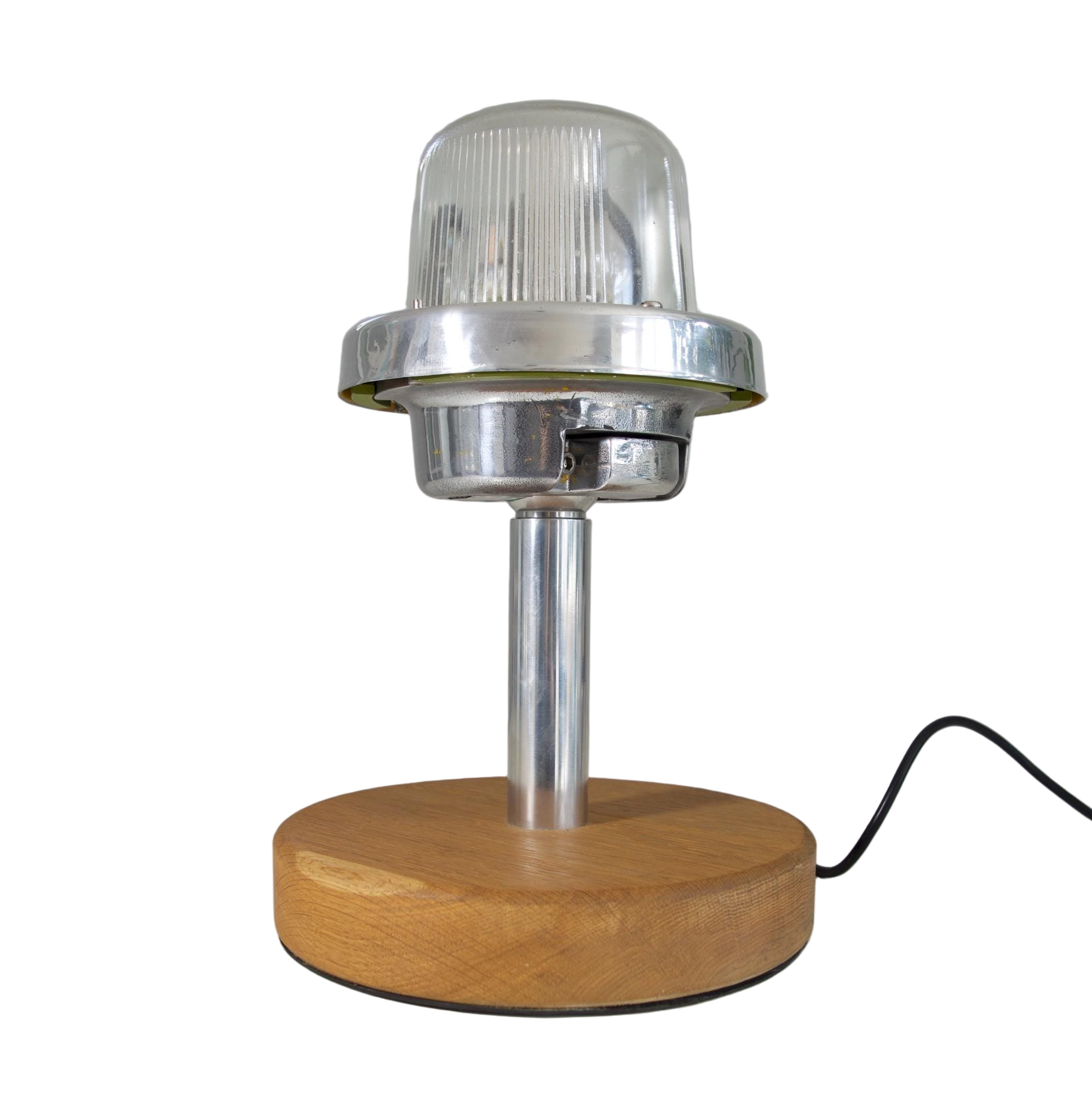 Crafted from an authentic runway threshold light, this restored aviation lamp pairs its original prismatic glass lens with a polished aluminium body to cast a warm, atmospheric glow, bringing true airfield history into your home.