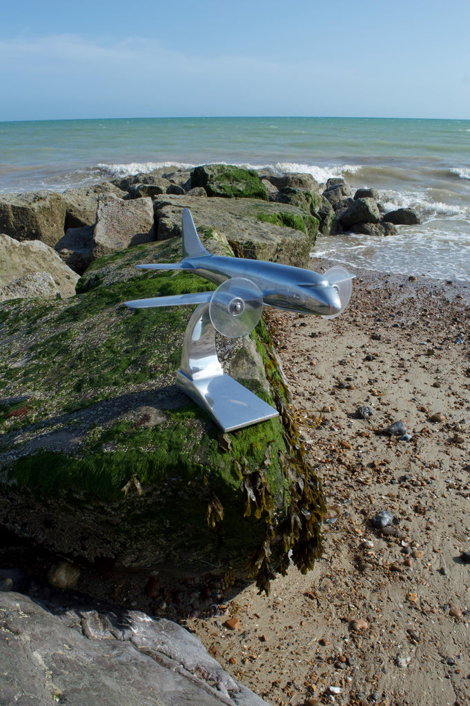 Handcrafted by Authentic Models (AP110), this desktop replica is cast in recycled aircraft aluminum for an authentic, polished shine that captures the era's industrial elegance. Features include riveted propellers that spin, a sleek stand for display, and meticulous detailing straight...